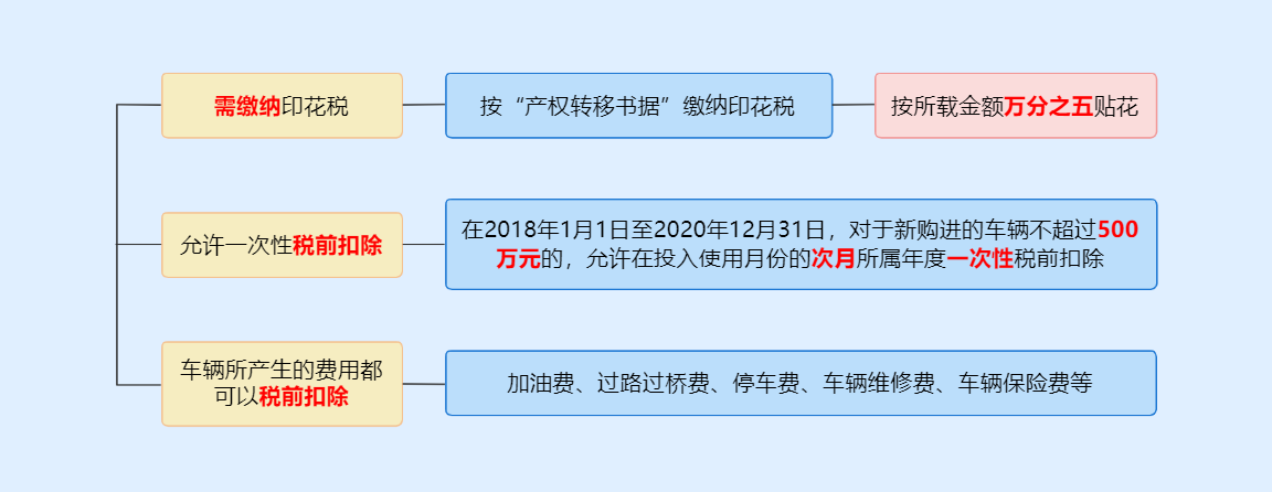 而且,公司購入的(de)固定資産,如(rú)果單價不超過500萬元,可(kě)以一(yī)次性在企業所得稅前扣除,如(rú)果購買的(de)是車輛,那麽車輛發生的(de)各種費用也可(kě)以入賬并稅前扣除了。